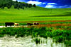 蓝宝石一样清澈的将军泡子、月亮湖,映出了畅游其中的天鹅、鸿雁和野鸭们的身影。地上铺满蒲公英淡黄色的花朵,空气中弥漫着湿润润的泥土的清馨...构成一道道独特而壮观的风景,成为千真万确的现实中的景色。(CCN传媒图片网 李琳) |